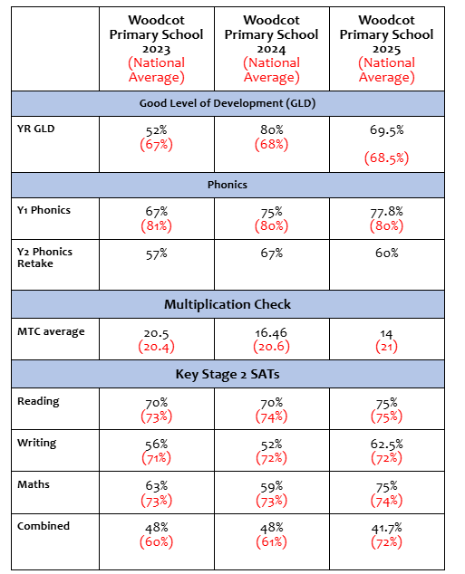 The DfE's published data for our school can be accessed